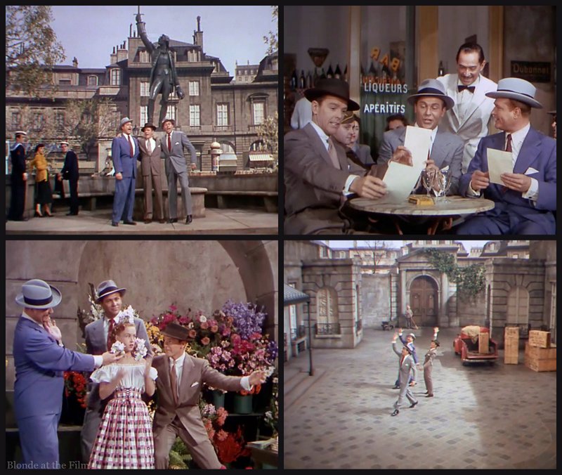 Another fun fact: during the number, the Champions dance around and under a rack of dresses, and I’m pretty sure the pale brown polka-dot dress hanging on the end is one of Katharine Hepburn’s costumes from Adam’s Rib (1949), another MGM film.