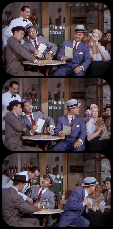 We learn that Tony, Jerry, and Al are already in debt and are desperate to get their show to Broadway. They discuss their woes, and Tony’s decision to change Al’s last name from “Wodzscyngkic” to “Marsh” as they make their way to Club Sirocco to meet up with Tony’s girlfriend, Bubbles (Ann Miller).
