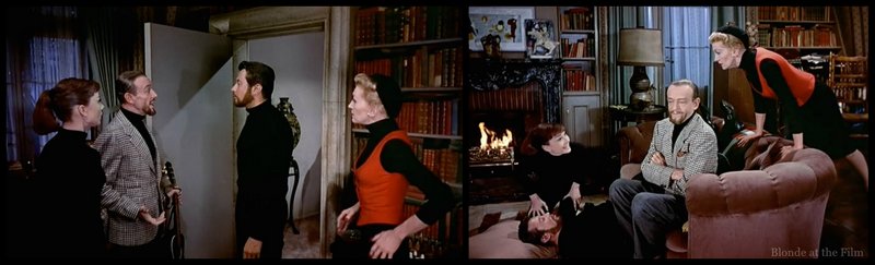 Dick and Maggie so spellbind the wacky audience (this scene is full of jokes and parodies of Left Bank overly-dramatic intellectuals) that Dick and Maggie are able to sneak upstairs to Flostre’s private quarters.