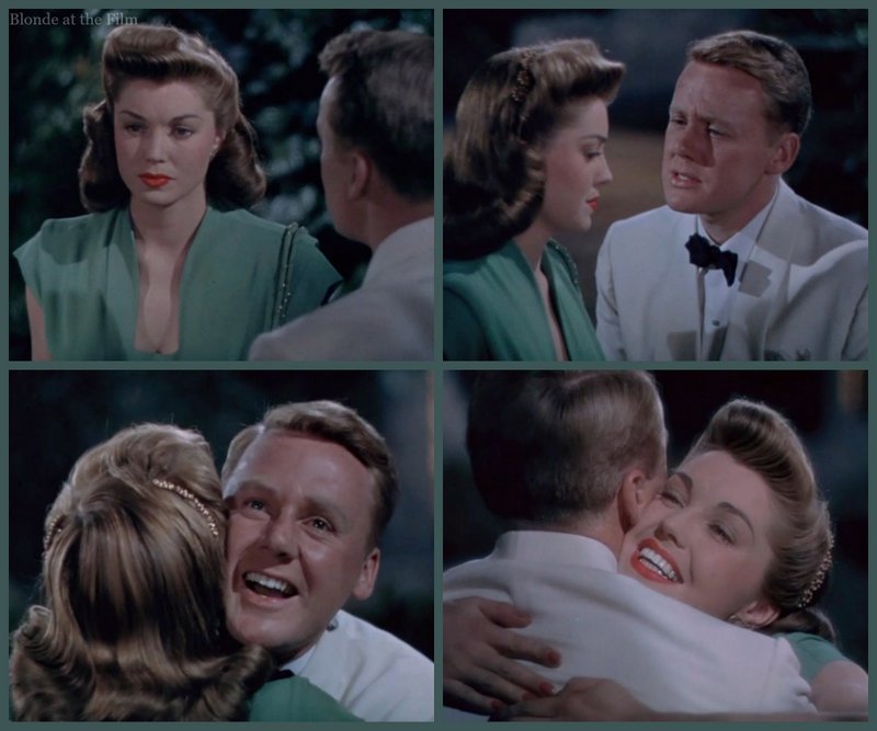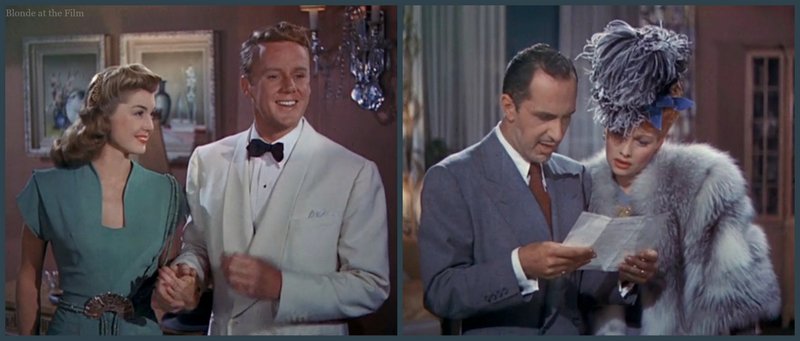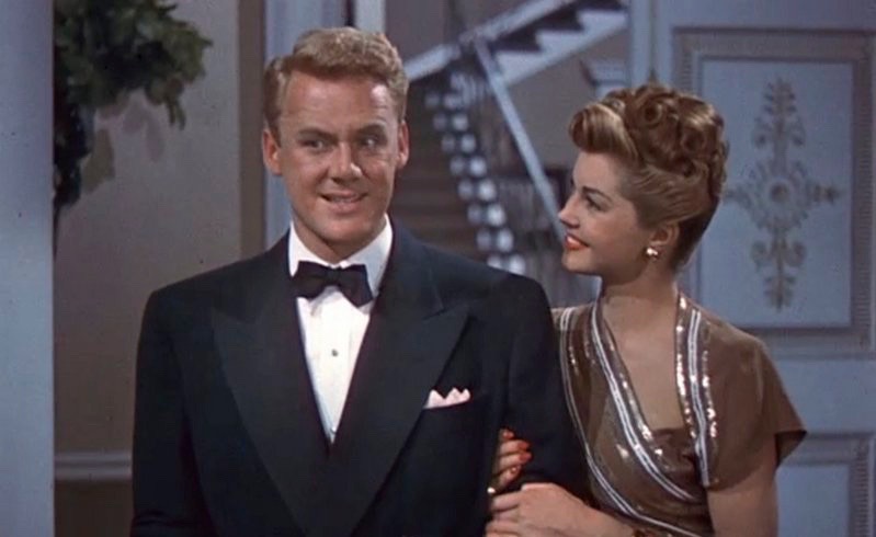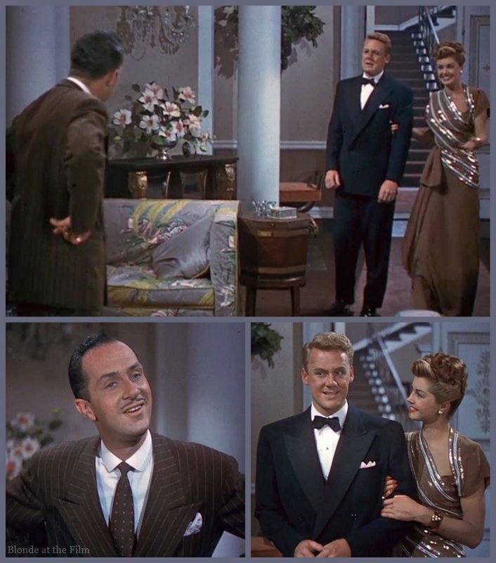 Fun fact: MGM pumped out the usual publicity photos for this film, including one of Johnson with Williams and Ball in wedding dresses. Ball is in the gown from this scene, but Williams (who doesn’t wear a wedding dress in this film) is clad in the gown she wore in Thrill of a Romance (1945):