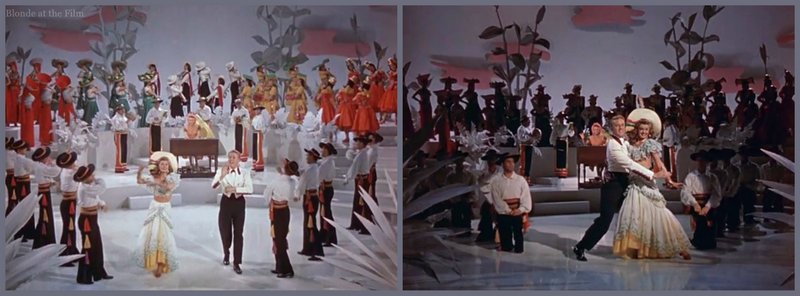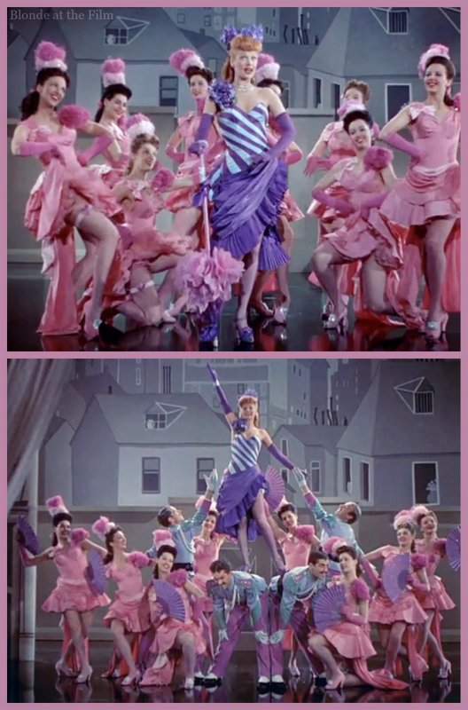 The Technicolor design of this film is stunning and bright, which is fairly typical for the period. Black, dusky blue, yellow, hot pink, and chartreuse are everywhere in musicals of this era.