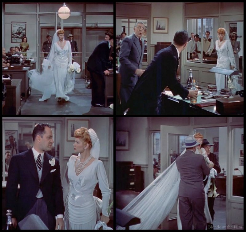 And Warren comes running, despite the fact that it is his wedding day, and he has already left his bride, Gladys, at the altar a few times before this! He seems excited to have an excuse not to go through with the wedding, actually. But his bride is not. Gladys (Lucille Ball) is absolutely incensed and storms into his office like a cyclone in a wedding dress.
