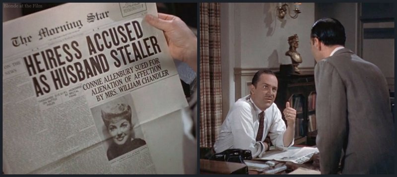 All but forty copies of the libelous newspaper are collected, and Mr. Farwood (Paul Harvey) the head of the paper, thinks they might just get away with it. But then he gets a phone call from J.B. Allenbury (Cecil Kellaway), Connie’s father. Oh, dear.