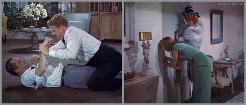The women resolve their issues quickly, but the stupid men start fighting. But maybe the men aren’t so stupid, because they realize that when the ladies hear the commotion, Gladys starts yelling for Warren, not Bill. So they escalate their fight to get the two ladies to “rescue” their “heroes.” Connie drops the key, so it takes a minute, but it’s a cute reference to the previous key scene between Bill and Gladys.