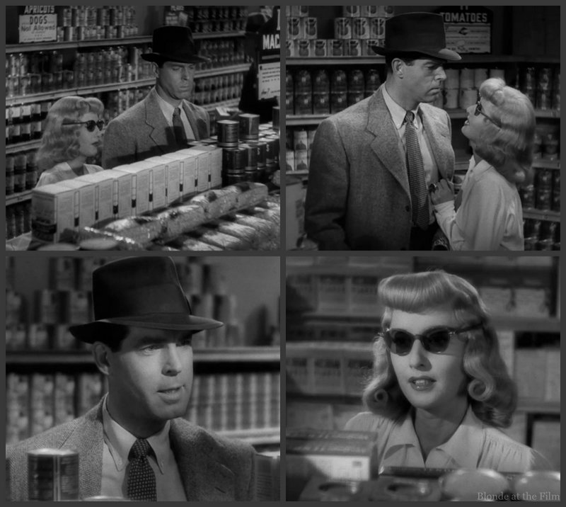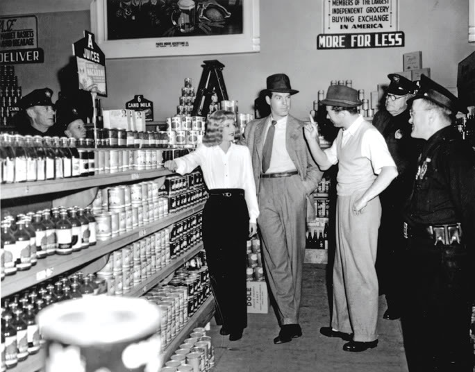 But remember, it’s just a movie. Here are Stanwyck, MacMurray, and Wilder between takes of this scene in Jerry’s Market: