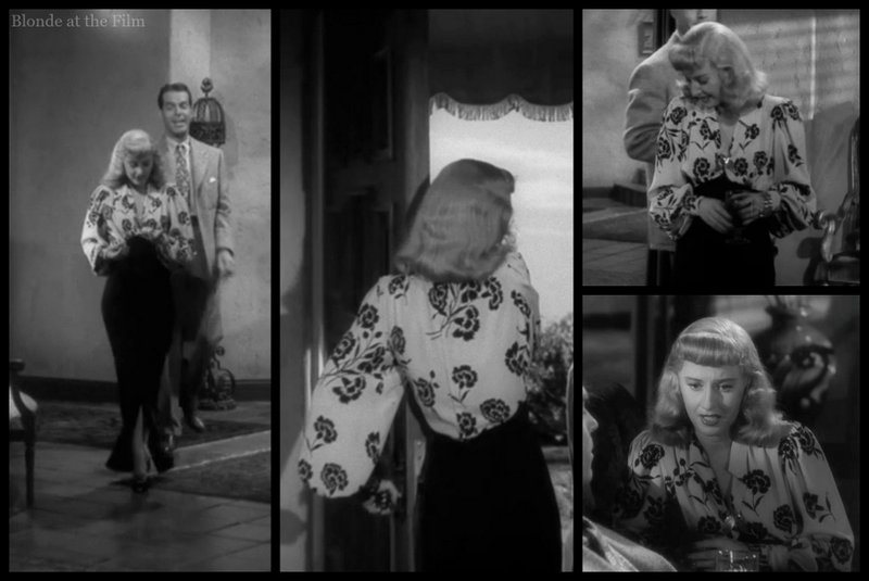 The intricacy of the designs was important because “A red sheath which might be magnificent for a scene in color would have looked like a gray sack in black and white” (The Dress Doctor.) For example, a dress like this pink one from Easy to Wed (1946), which is stunning on Esther Williams in high-key Technicolor, would look awfully dull, like a “gray sack,” in black and white. But Phyllis’ flower print dress has the extreme contrast and the elaborate detail that makes it pop in the black and white world of Double Indemnity.