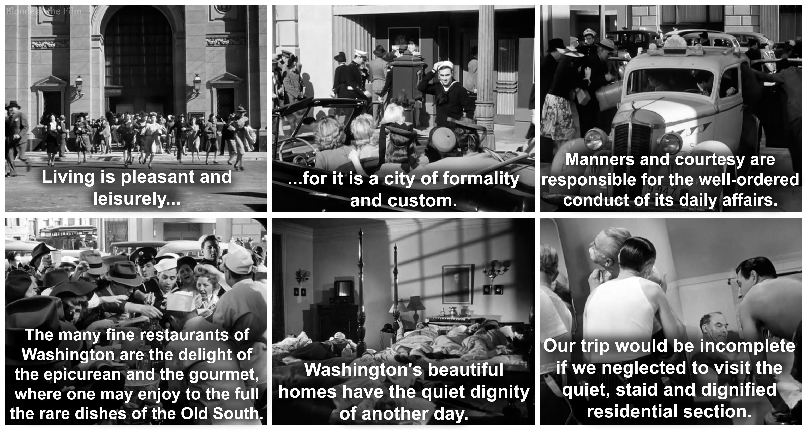 The More the Merrier is not alone in dealing with Washington’s wartime overcrowding. Film historian Frank Krutnik identified nine films released between 1943-1944 that dealt with the capital’s housing crisis: The More the Merrier (1943), Get Going (1943), So This is Washington (1943), Government Girl (1944), Standing Room Only (1944), Ladies of Washington (1944), Johnny Doesn’t Live Here Anymore (1944), Music in Manhattan (1944), and The Doughgirls (1944), based on a popular play.