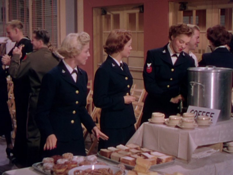 Coffee in teacups and doughnuts at a USO party in Skirts Ahoy! (1952)