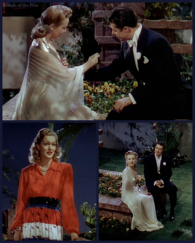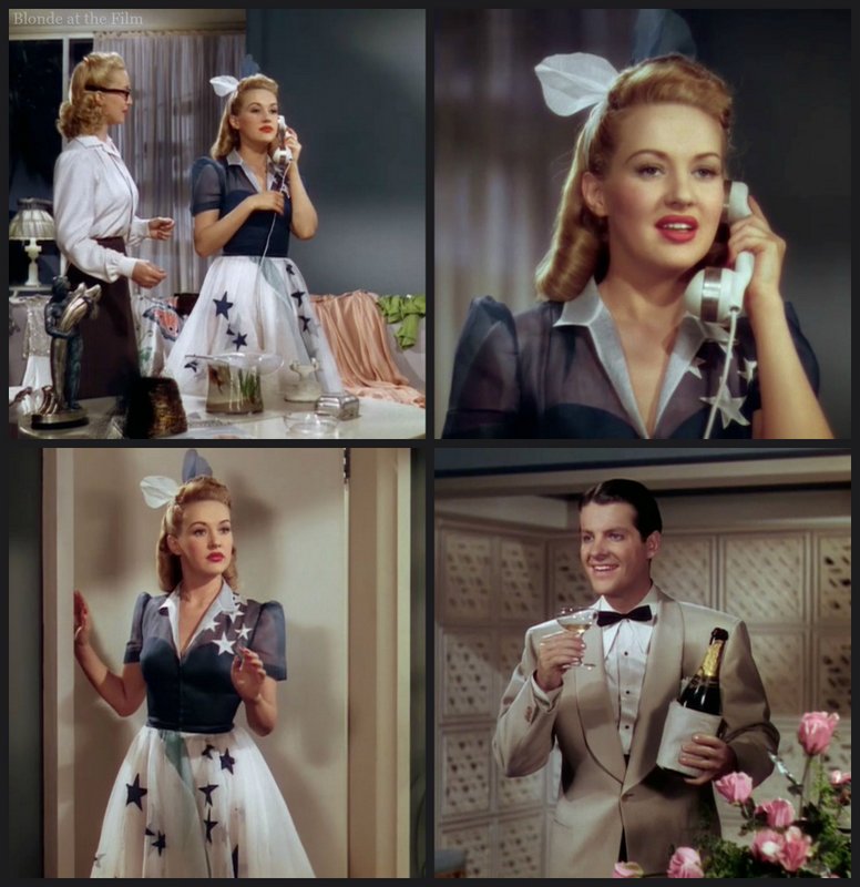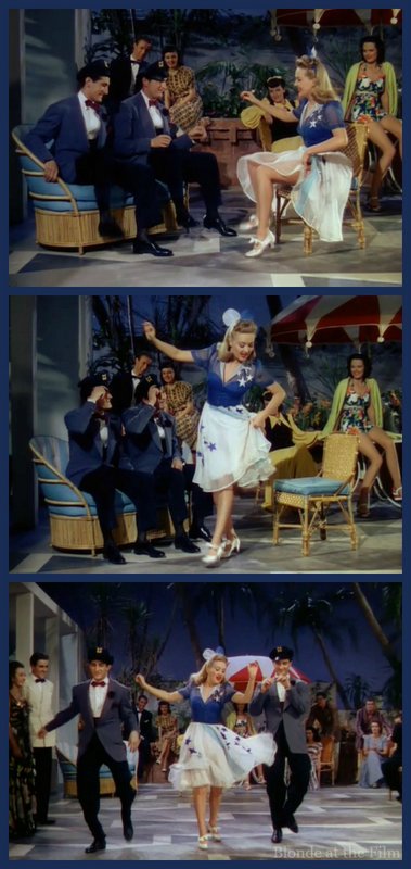 Costume appreciation break. Notice how the buttons down Grable’s dress run diagonally: