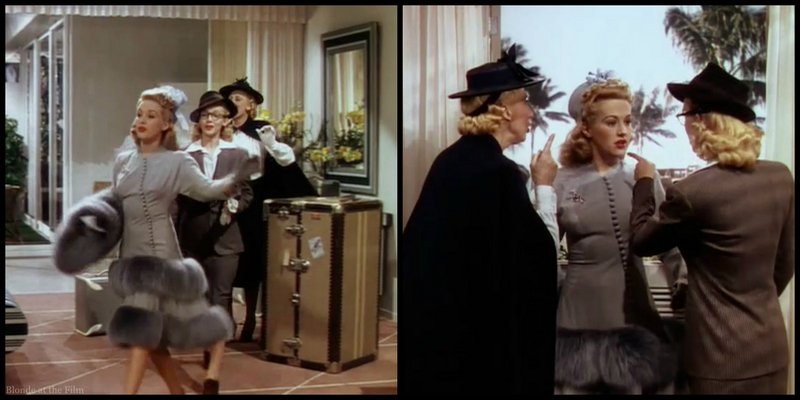 Kay, now arrayed in climate-inappropriate fur, strolls into their luxury hotel with her “secretary” and “maid” in tow. I love that there was never any discussion about which sister would be the “lady” and which would be the “secretary.” Everyone automatically agrees that Kay is the prettiest and their best chance to hook a rich man, even though Carole Landis is no slouch!