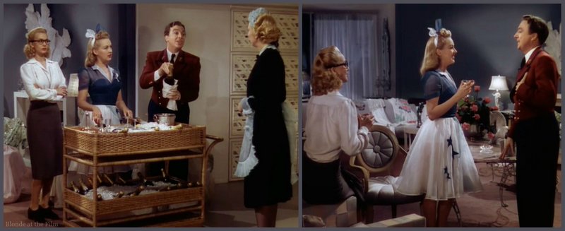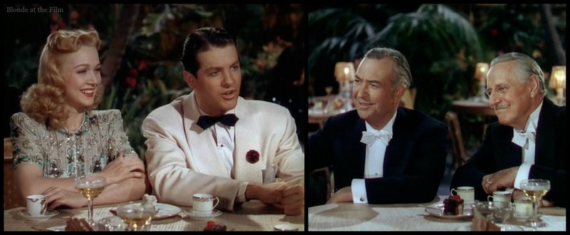 Jeff takes Kay to the party he’s been throwing for three days. They stumble over the drunken form of Phil McNeil (Don Ameche), whose curmudgeonly rudeness provides a nice contrast to sweet, chivalrous Jeff. But you know immediately that Kay will end up with Phil. Not least because Grable and Ameche had starred together and found love in Down Argentine Way (1940), but also because immediate dislike is a prerequisite for eventual love. At least in the movies.