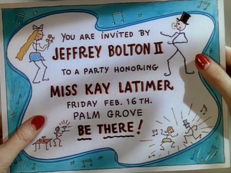 Jeff’s father throws a lavish engagement party, but this time Kay doesn’t provide the entertainment. She just dances with Jeff and then Phil, watched all the time by Jack.
