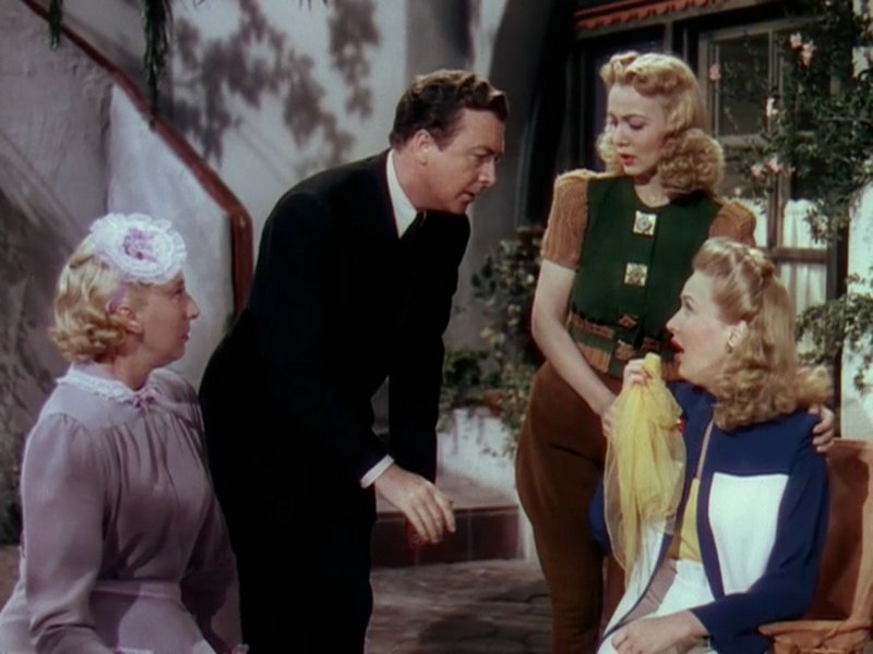 When the mailman arrives, Kay and Barbara run to the kitchen with a long awaited letter. Their Aunt Sue (Charlotte Greenwood, who starred with Grable in Down Argentine Way) reads the letter notifying the three women that they’ve been left $55,000 by a wealthy relative.