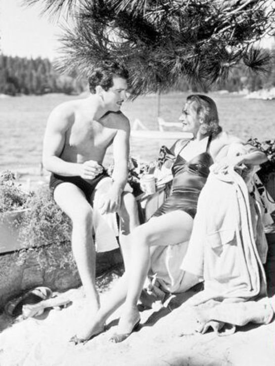 Here are MacMurray and Lombard between takes in their swimsuits. So glamorous!