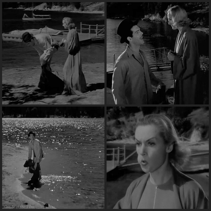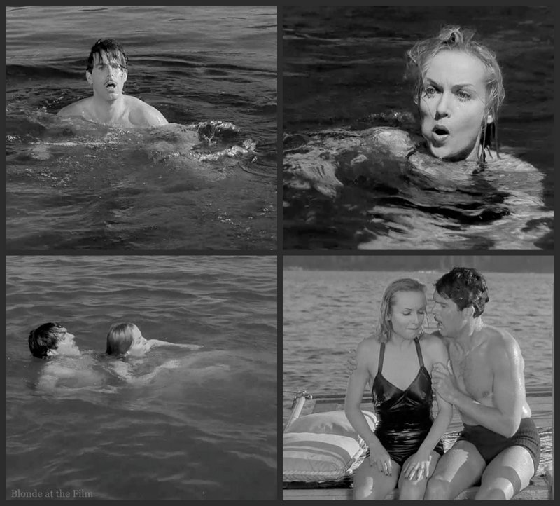 Ken refuses to come back and talk to Helen, so she sticks her tongue in her cheek and pretends to be drowning. He comes back at once, realizes she is faking it, and pushes her under the water. Then she really does start to sputter and falter. So he rescues her for real. And mostly all is forgiven.
