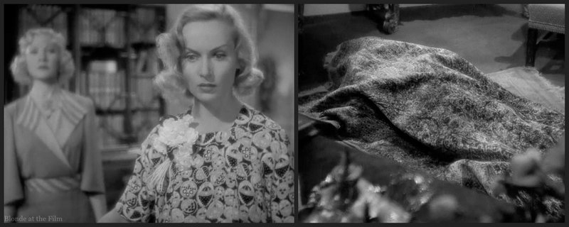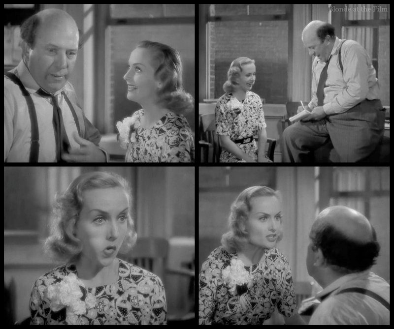 Costume note. That huge bunch of flowers on Lombard’s lapel must have been all the rage in the mid-1930s. She wore another large bunch of blooms in Hands Across the Table (1935), and you can see other women similarly festooned in various films.
