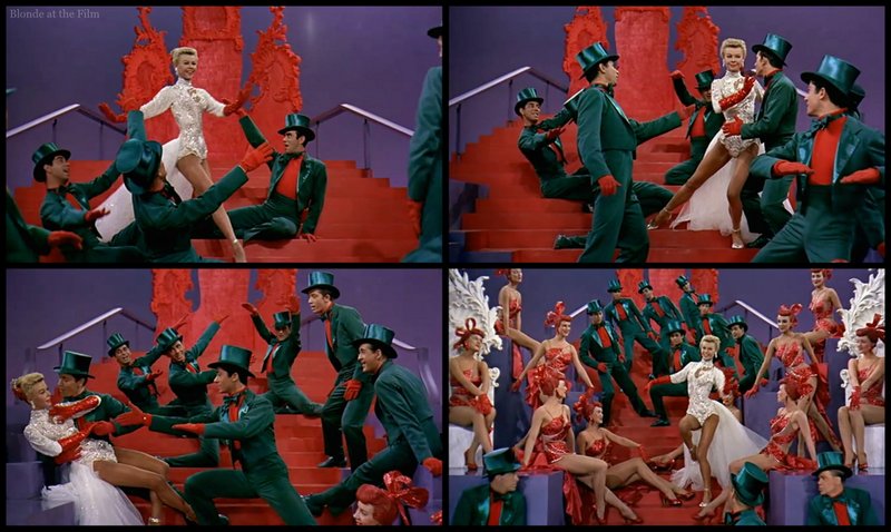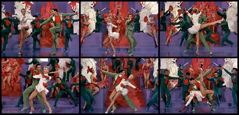 Ellen is so tiny (she most likely suffered from anorexia) that she seems to skim the floor like a weightless pixie. Her flexibility is terrifying, so her kicks and bends are pretty extraordinary, too. Her dancing seems more self-assured in White Christmas (1954), her most famous role, but perhaps she is holding back because her character is supposed to be a restrained, retiring sort of girl.