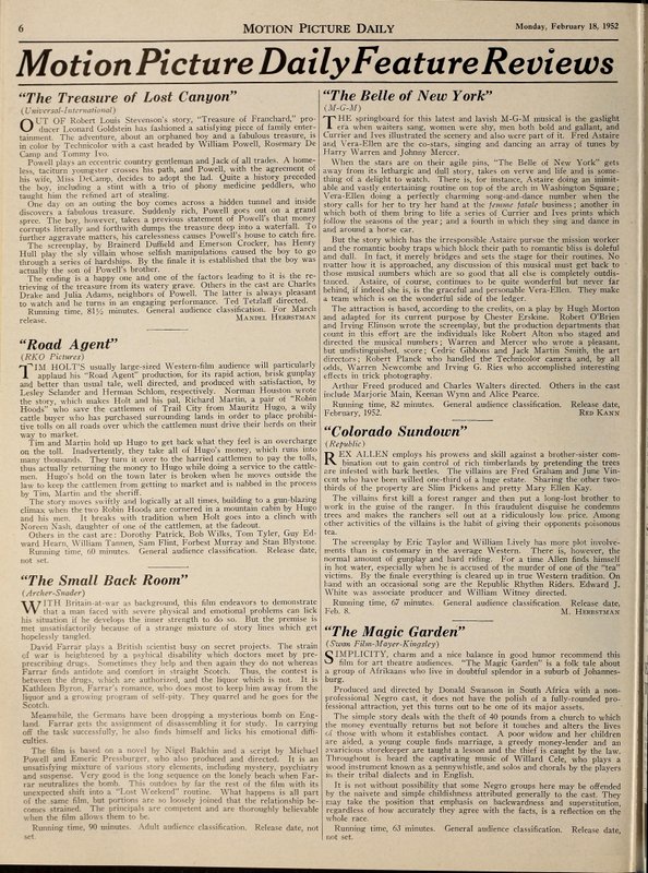 via: Motion Picture Daily, Reviews Feb 18, 1952.