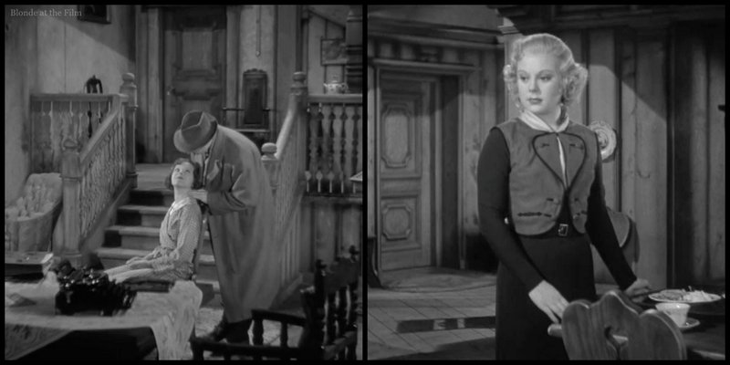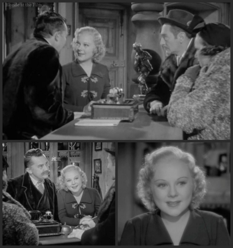 Meanwhile, Bob Harris (Don Ameche), a reporter from the Paris Herald, and his partner Danny (Ned Sparks) arrive at the inn. They have come to investigate the Grand Palace Hotel fire, which they suspect might be arson or maybe even a sinister explosion. They chat about a certain notorious man who was seen at the hotel before the fire, and a woman in a mink coat who fled the blaze. Very suspicious.