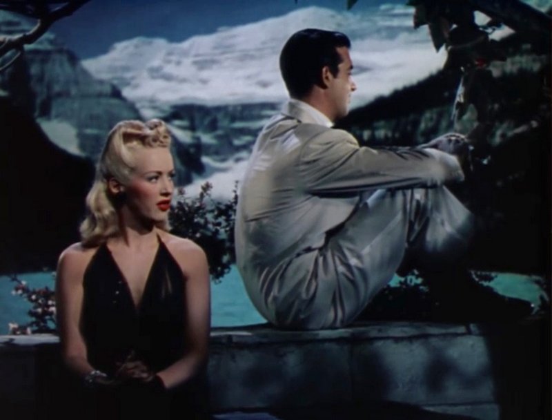 After all, other movies that spotlight a location, like Moon Over Miami or Duchess of Idaho at least show montages of the characters taking in the sights or availing themselves of the location’s special activities. But Grable and the others don’t go hiking/skiing/swimming/fishing/boating or anything. They basically stay inside the entire time.