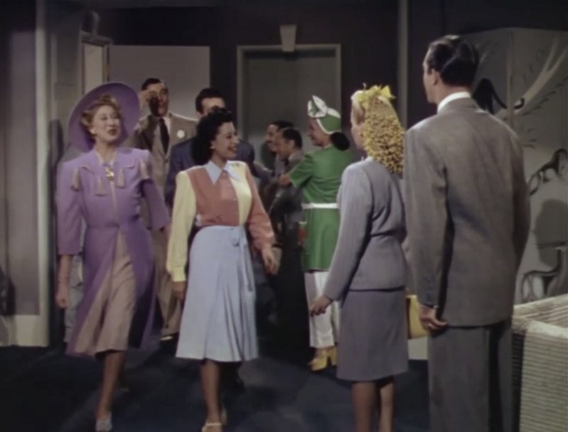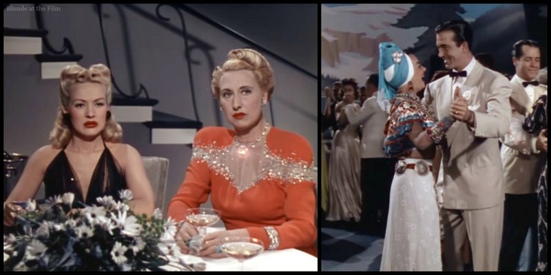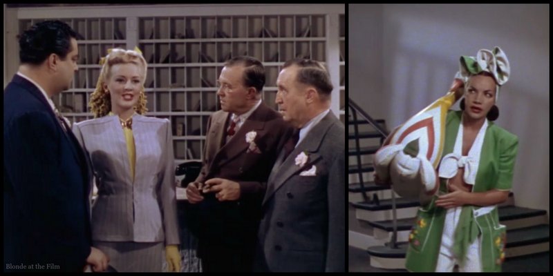 The dance is energetic and bouncy, but I’m distracted by Grable’s gorgeous pink feathers. Earl Luick designed the costumes for this film. He had been in Hollywood since the late 1920s, and was employed at Fox in the early 1940s. He designed some incredible and very pretty outfits for Grable in this movie so that she looks like she’s walking a glamorous, colorful catwalk in nearly every scene.