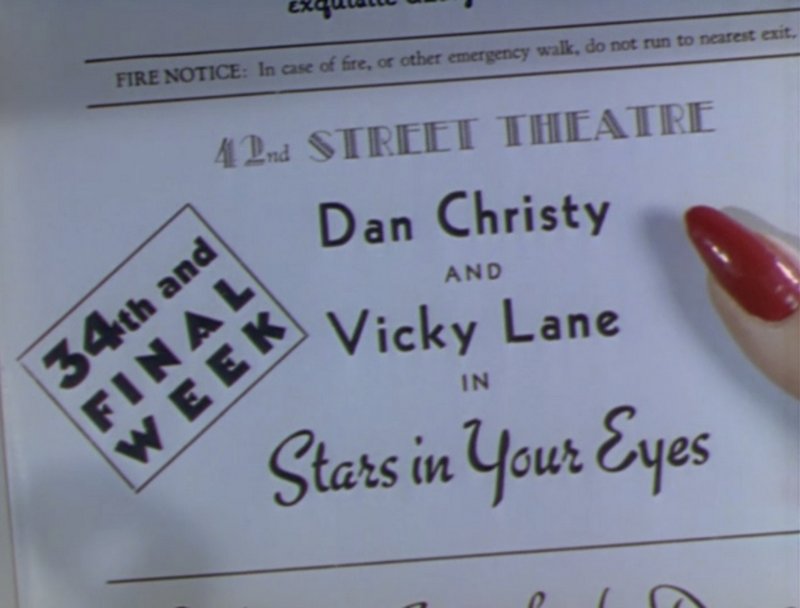 One evening, Dan’s agent finds him at the bar with some good news. He has secured two potential backers, Bickel and Brown, for his show. But they will only invest if Vicky Lane stars alongside Dan. That seems like an impossibility, but his agent has a plan.
