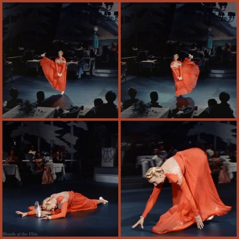 The champagne goes to her head immediately (people seem to get drunk instantly in old movies), so she tipsily strolls onto the dance floor and performs her own impromptu solo.