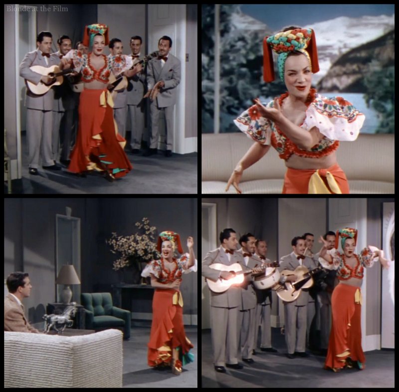 After this awkward encounter, Dan heads back to his room. He thinks that all is lost because Vicky is engaged, so he wants to quit and go back to New York. But he is soon confronted by another problem: his “secretary” (Carmen Miranda) has arrived. Springtime in the Rockies Miranda Horton Payne
