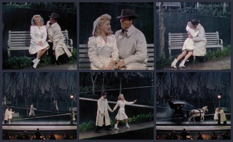But the show must go on! Vicky and Dan perform “Run, Little Raindrop, Run,” (the English language tunes are by songwriting duo Mack Gordon and Harry Warren), but Vicky manages to get a few well-placed kicks and elbow jabs in during the number. But Dan sneaks in some kisses, so they’re pretty even. You can watch the performance here.Springtime Rockies Payne Grable rain