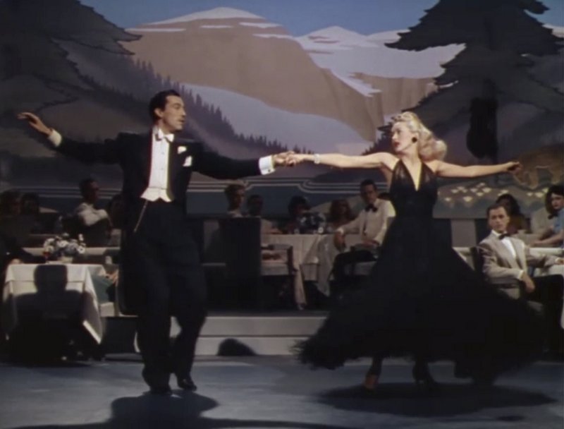 Meanwhile, Victor and Vicky perform a sultry number in the dining room accompanied by Harry James. Springtime Rockies Romero Grable dance 2