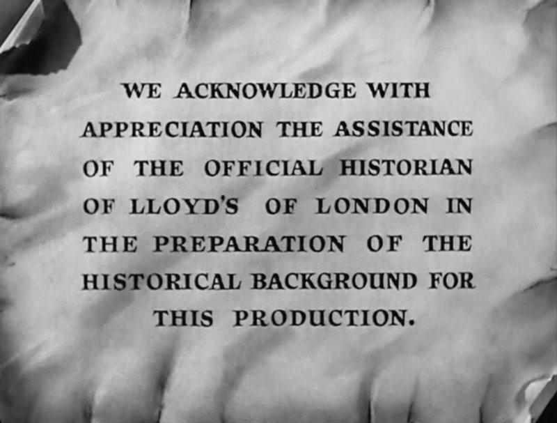 As you may be able to tell from that brief plot summary, this movie is an odd one. It’s an amusing mix of history and fantasy that also functions as a commercial for the titular insurance market. The film ties up the health of Lloyd’s with the health of the British nation, and also conflates the market’s growth with the growth of the Empire. That isn’t necessarily untrue, but it’s certainly simplified for dramatic effect in this film. Plus, the Battle of Trafalgar is given an entirely new, entirely fictional backdrop.