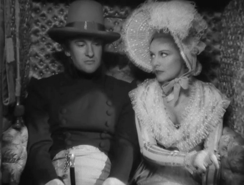 Things get even hairier when Napoleon orders the arrest of all English people in France. Jonathan goes to Calais disguised as a priest to spy for Lloyd’s, and he comes across a beautiful young British woman named Elizabeth (Madeleine Carroll) who has just been arrested by French soldiers. She didn’t know about the order (and she wouldn’t have, since Napoleon didn’t issue that decree until years later in 1803. You have to let this stuff slide.)