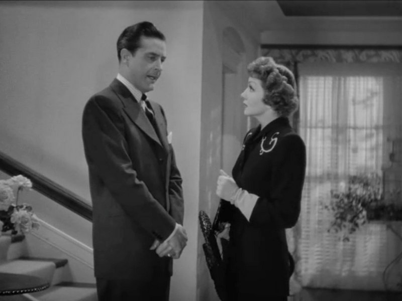 As she’s waiting for the gift to be boxed up, a man named George Gorell (Walter Abel) rushes in and tells the salesman that he needs a fifth anniversary gift for his buddy’s wife. His friend totally forgot and doesn’t have time to stop in, so he sent George, instead. George does “Eeny, meeny, miny, moe” to randomly choose a bauble. It’s what every wife dreams about…