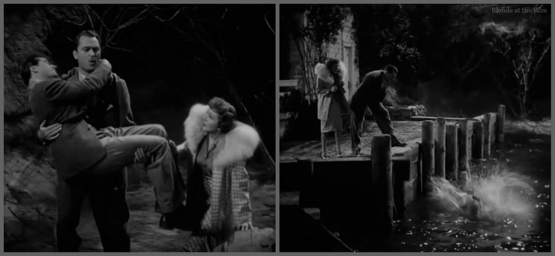 And she appears to be doing just that. She decides that the best way to get rid of Tony is to make him stop wanting her. So she stops by his cabin and throws herself at him in a very wanton way. (Wanton for 1941, of course. So pretty tame.)
