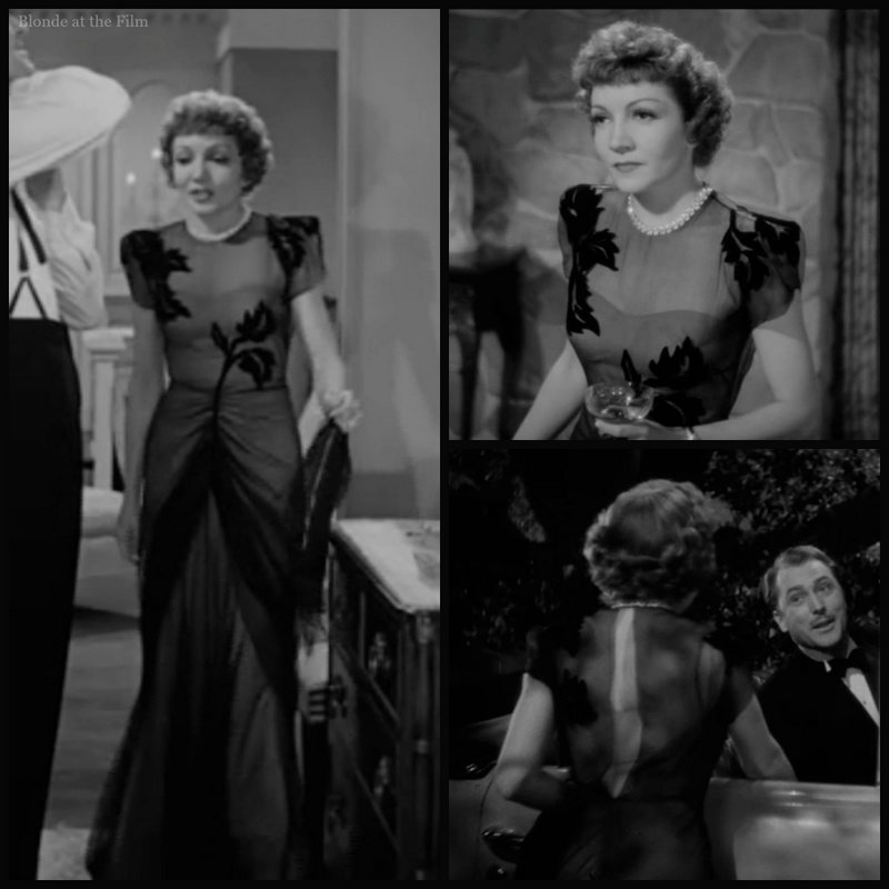 Costume appreciation break. Irene was brilliant at the sleek, draped-yet-streamlined style popular in the late 1930s to mid ’40s. Colbert wears the gowns beautifully, too.
