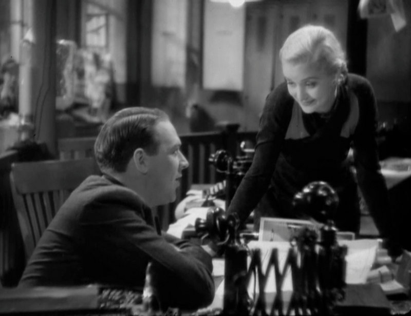 Meanwhile, Johnny is doing well. He loves his work, and he’s in love with a very pretty illustrator named Irene (Marian Marsh) who sketches and does layouts at the paper. (Just when you thought this movie wouldn’t have a named female character, Miss Irene appears! She’s the only one, though.)