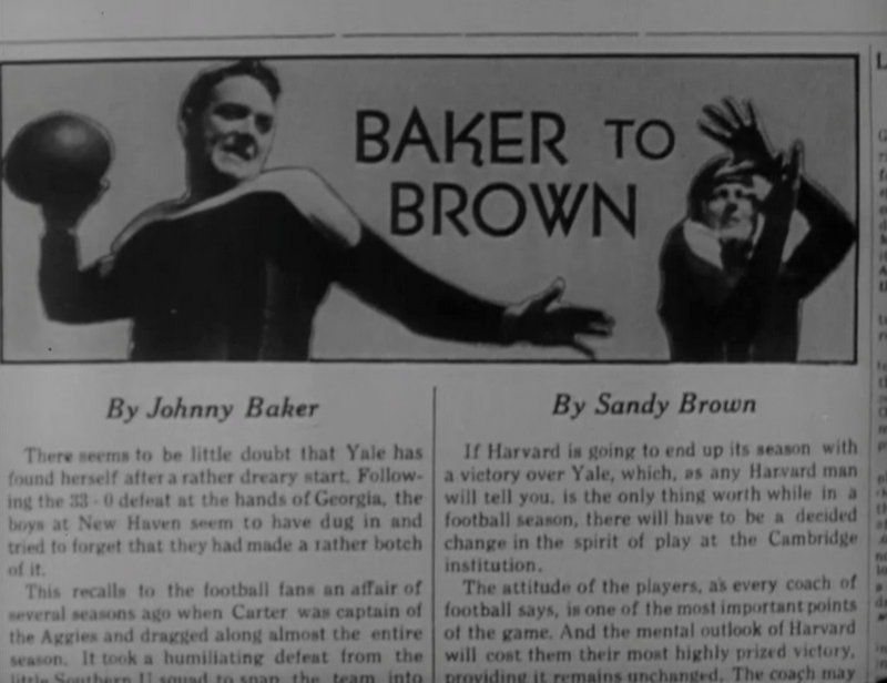 After graduation, Johnny becomes the editor of the sports section at The Bulletin, and Sandy goes on a disastrous personal appearance tour. The demand for just Brown without Baker isn’t as strong as they’d hoped; plus, Sandy isn’t an especially charismatic speaker. He gets jeered off the stage and quits. (I don’t know why people would buy tickets and then be such a cruel audience, but that’s how it goes.)