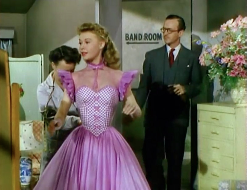 Janet Jones (Vera-Ellen) and her bestie and roommate Mae (Diane Hart) aren’t having an easy time, either. They have to sneak into their flat because they owe several weeks’ worth of rent. Fortunately, the landlady used to be a chorus girl, too, so she lets them stay when they promise to pay her once the show opens.