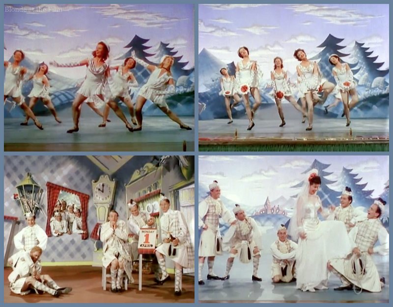 Inside the Mercury Theatre we watch the company perform “MacIntosh’s Wedding.” The number is a Scottish themed romp about a groom desperately trying to escape before his wedding. Can you find our star, Vera-Ellen?