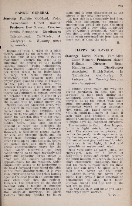 He tempers that conclusion with this lukewarm praise: “But somehow, for all its hackneyed substance and the incontrovertible fact that, except for a few “establishing” glimpses, it has nothing to do with Edinburgh, there is a certain limpid charm about this picture—a certain childish cheerfulness—due, in the main, we would reckon, to Vera-Ellen’s youthfulness and grace.”