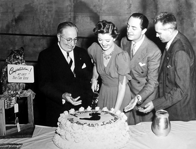 Myrna Loy’s birthday on set with Louis B. Mayer, Powell, and Van Dyke via: http://classiccinemagold.com/tag/another-thin-man/