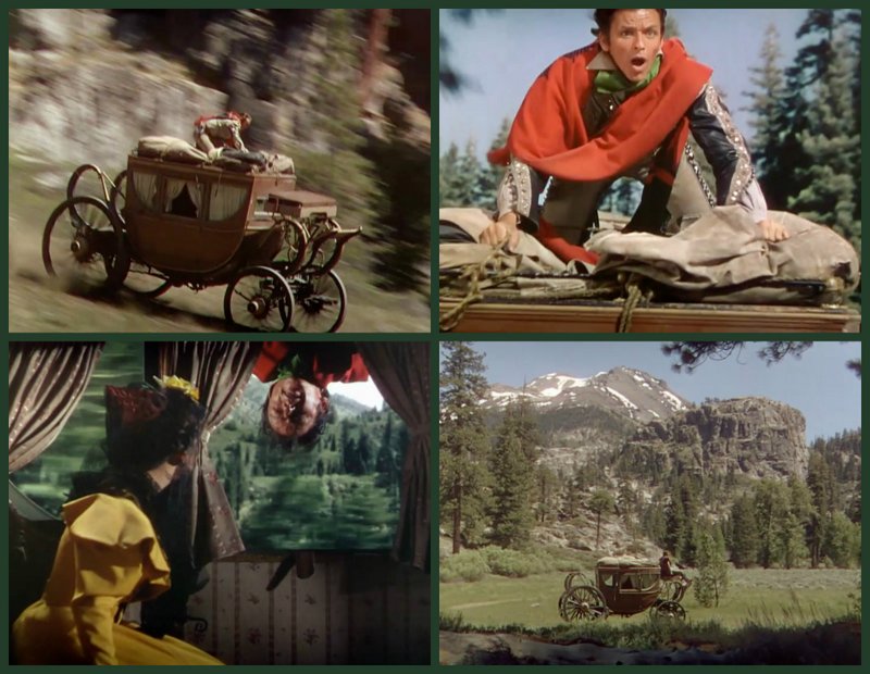 When Ricardo tries to join the bandits but falls off of his horse and causes the stagecoach to careen free from its team and driver. Teresa and Ricardo take a terrifying ride down the mountain.