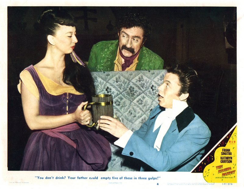 delightful comic opera that it was plainly intended to be. For Metro has generously given it all the material things that go to make an elaborate and satisfying show. It has filled it with lovely Spanish costumes and lush California-Spanish sets, three or four talented dancers and a not inconsiderable minor cast. It has called upon beauteous Kathryn Grayson to sing and play the leading feminine role and it has rounded up Frank Sinatra (well, maybe we should skip that) to take the lead.