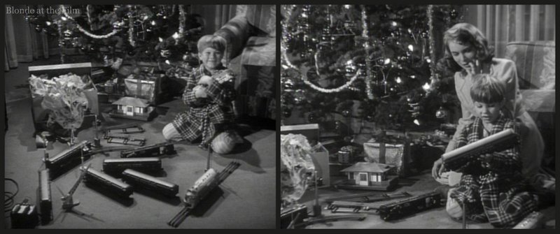Later that evening, Connie arrives home with a few boxes, including the train set. Unsurprisingly, her rascally six-year-old son, Timmy (Gordon Gebert), sneaks a look at the train and assumes it’s for him. He is thrilled but then devastated when Connie says it’s for the store and she has to take it back tomorrow. Poor kiddo–he was so excited!