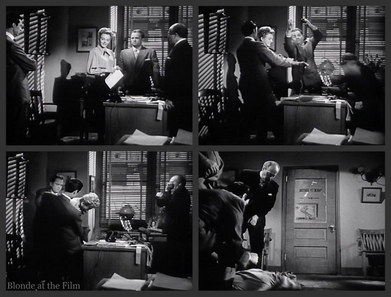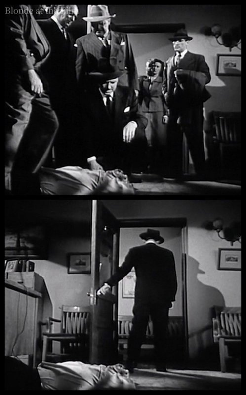And weird, because after she dies, Les and a bunch of other people file into the office and stare at her dead body. So much for crime scene contamination. Eventually, it’s just Les looking down at her, though he too leaves and shuts the door on her corpse! So strange. But very noir, I suppose.