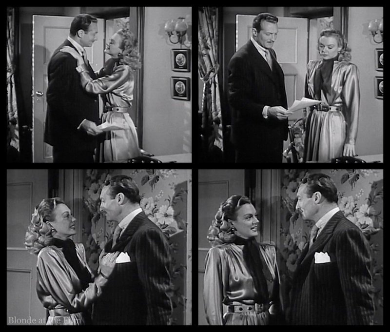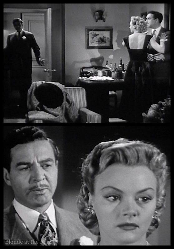 Back to the film! That same evening, Blackie, the pilot, resurfaces to blackmail Claire. He needs cash, so he threatens to tell the cops about flying her to San Francisco unless she pays up.