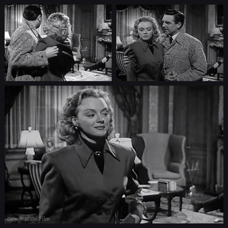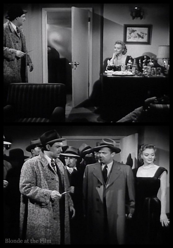 But the cops realize there is something fishy going on. There were no fingerprints on the gun and no powder burns, but they don’t have enough evidence to charge Claire, thanks to her (false) alibi of being in Los Angeles. And there isn’t any strong evidence tying Les to the murder, either, though he is an obvious suspect. Venetian blinds make great shadows, don’t they? So very noir.