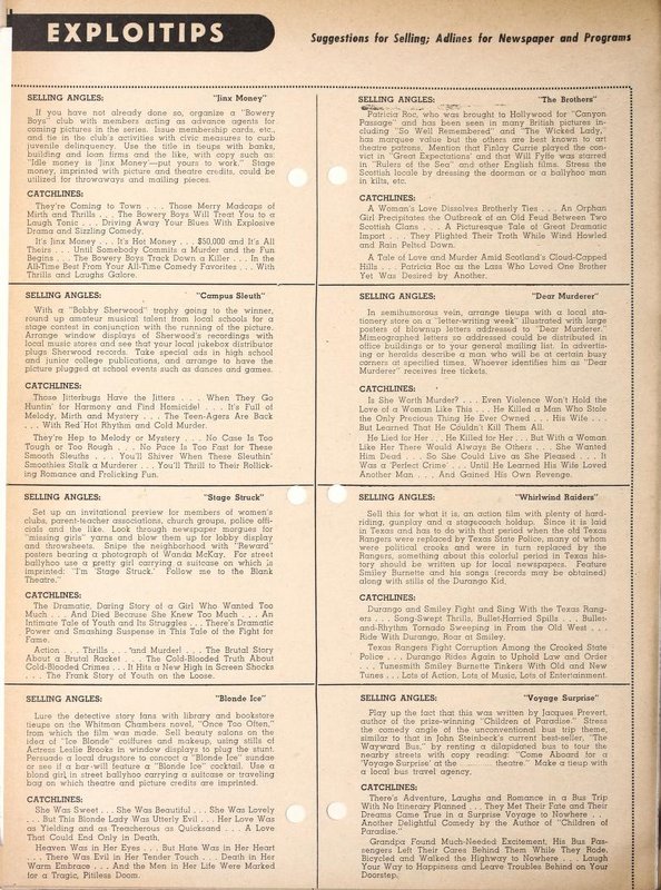 Another fun fact: Box Office magazine recommended exhibitors exploit the relationship between the movie and the book, Once Too Often, by creating tie-ins with libraries and bookstores. “Blonde Ice” hairdos and makeup at salons were another advertising recommendation, as was the rather farfetched “Blonde Ice” cocktail or ice cream sundae.